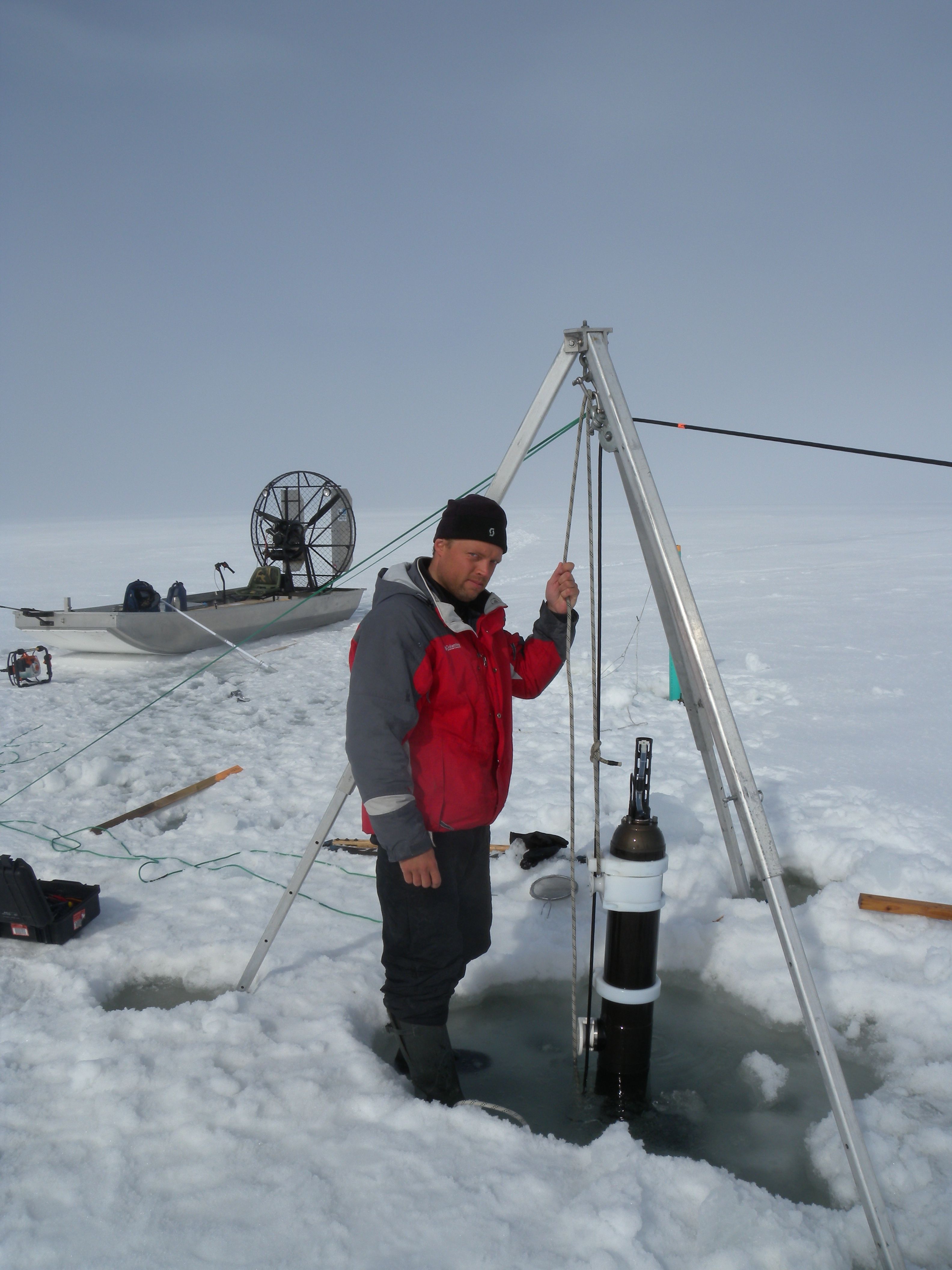 Sergei Kirillov, research scientist (CEOS, University of Manitoba) working with moorings. Credit: Vlad Petrusevich